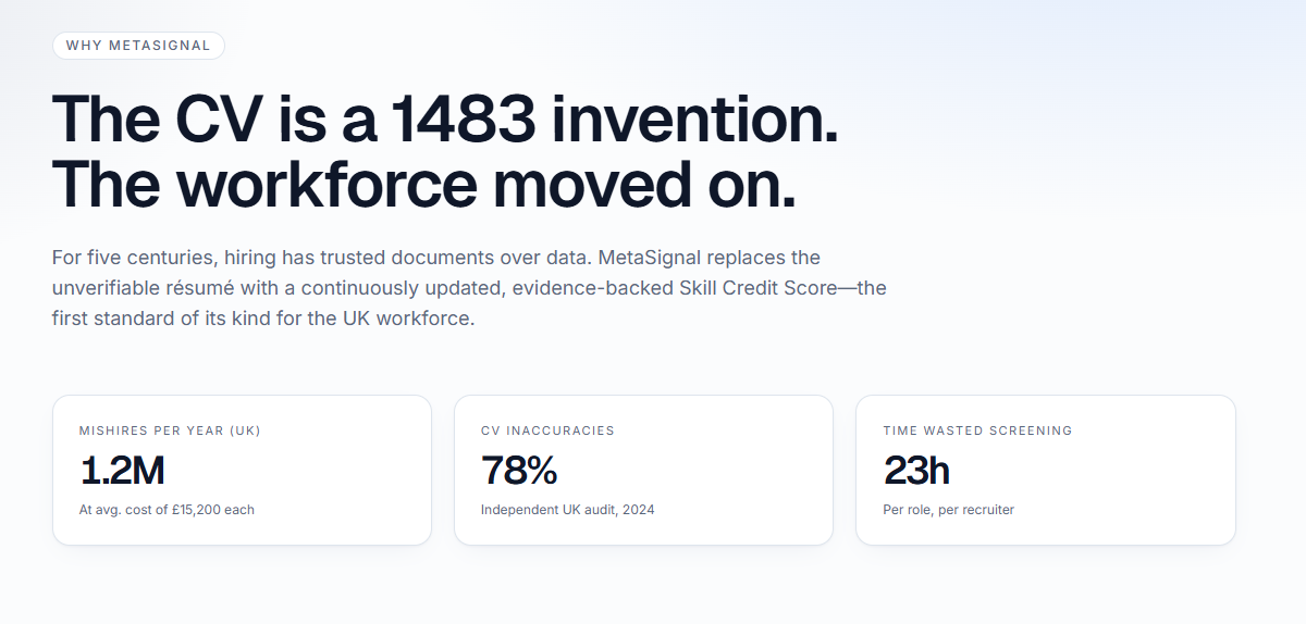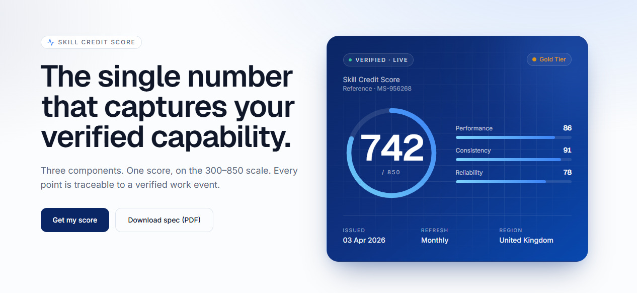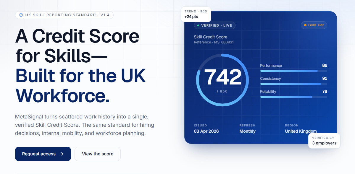 The Skill Credit Score via MetaSignal isn’t a distant concept — it’s here now, built for the UK market and designed to drive economic mobility by matching real ability with real opportunity.
